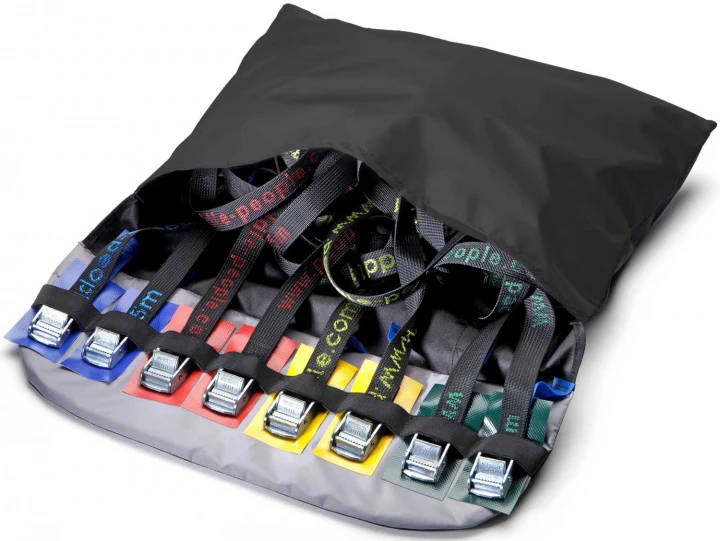 Der praktische Ordnungshelfer für alle, die Spanngurte benutzen. Im Tidy Bag können bis zu 8 Spanngurte mit 25mm Schnallen sauber und übersichtlich verstaut werden.