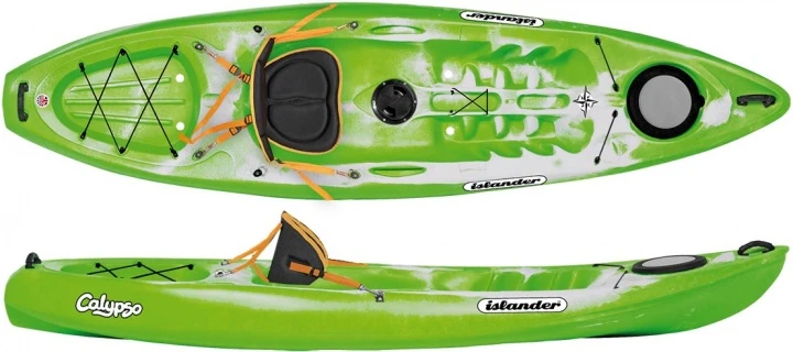 Calypso Sport: Aus Superlinearem PE, inkl. Rückenlehne mit Sitzpolster, Paddelhalter, Tagesstaufach im Griffbereich und Gepäckluke im Bug.