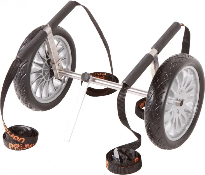 Stabiler Bootswagen für Seekajaks, Tourenboote und Canadier. Die Rahmen des Steel Bootswagen sind aus Edelstahl gefertigt und somit absolut korrosionsfrei. Die neue Steck-Technik mit Federn aus Edelstahl ermöglicht eine Konstruktion, die ohne lose Teile auskommt. PU-Schaumräder bieten ein sehr niedriges Gewicht und können keine Luft verlieren. Weiterer Vorteil: das geringe Packmaß in demontiertem Zustand.